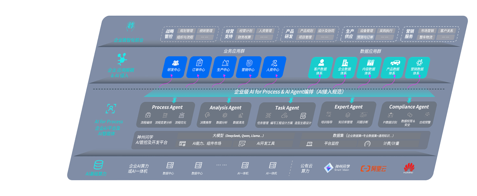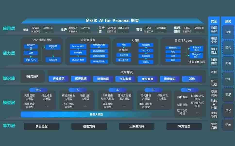 端到端的一站式AI工作空间深度融合了从企业战略规划到日常经营的全流程业务板块,,,,定向解决车企内部领域多、、、部门多、、链条长、、、场景碎片化等难题,,支持车企快速构建以AI为核心的生产力写作体系,,实现任务执行与AI能力的无缝集成与交互